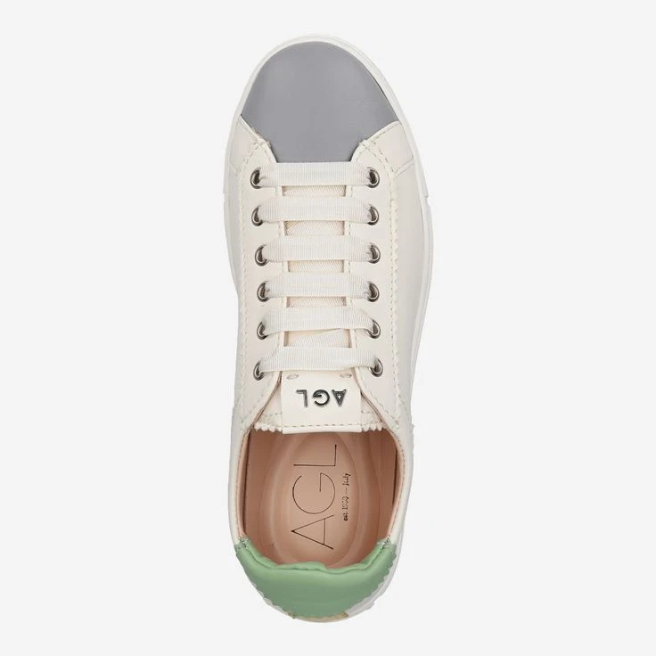 Noble details make this Italian luxury sneaker from AGL an absolute work of art! The mix of white smooth leather and the blue toe section form the canvas, which is designed by playful zig-zag hems, a green heel cap and numerous logo embossing along the sole. Because art is individual, creative and allows you to express yourself!