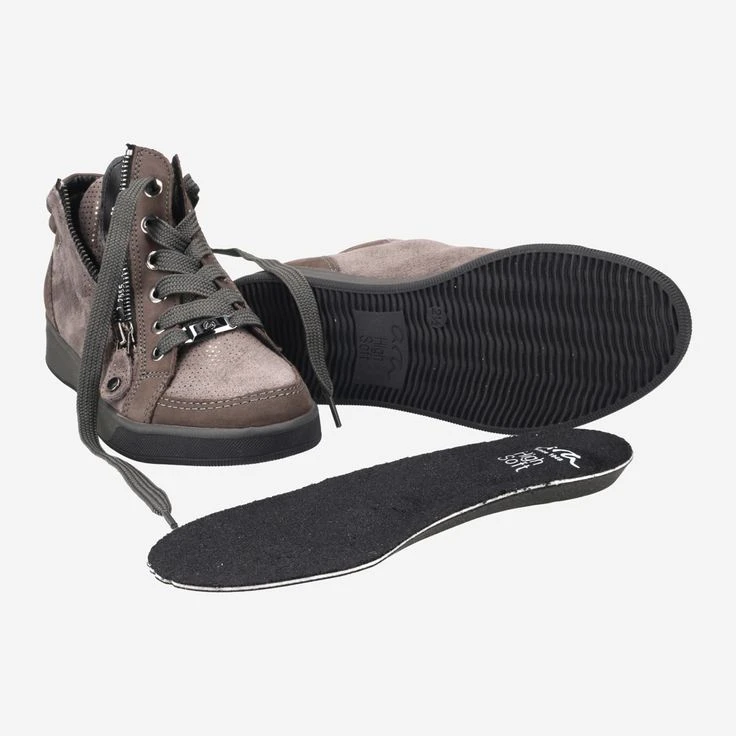 - Environmentally friendly bamboo fibers, extra soft, unique microstructure, excellent moisture absorption, high breathability, removable footbed, suitable for insoles, zipper closure, rivet application, metallic-look dot print, insole machine washable up to 30°.