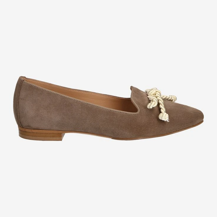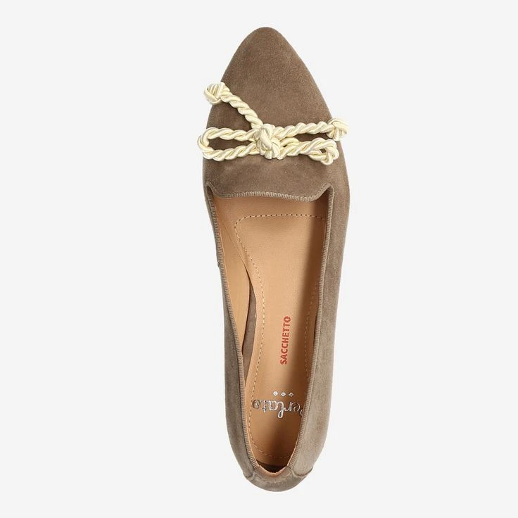 This elegant women’s slipper from Perlato made of high-quality in trendy gray suede convinces all along the line. Super fast dressed, comfortable and pleasant to wear, thanks to the sacchetto style and aufgehübscht with a charming cord. Perfect for fancy events or for the office.