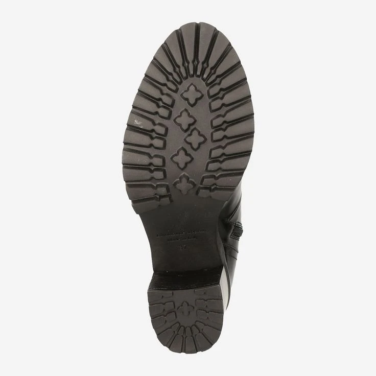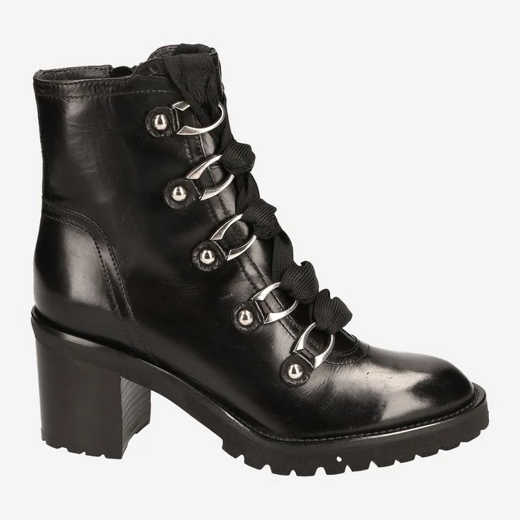 Stable step and high you come with these boots made in Italy. The striking profile sole and the black smooth leather make a cool statement. The lacing with eye-catching eyelets and flat laces create a feminine look.