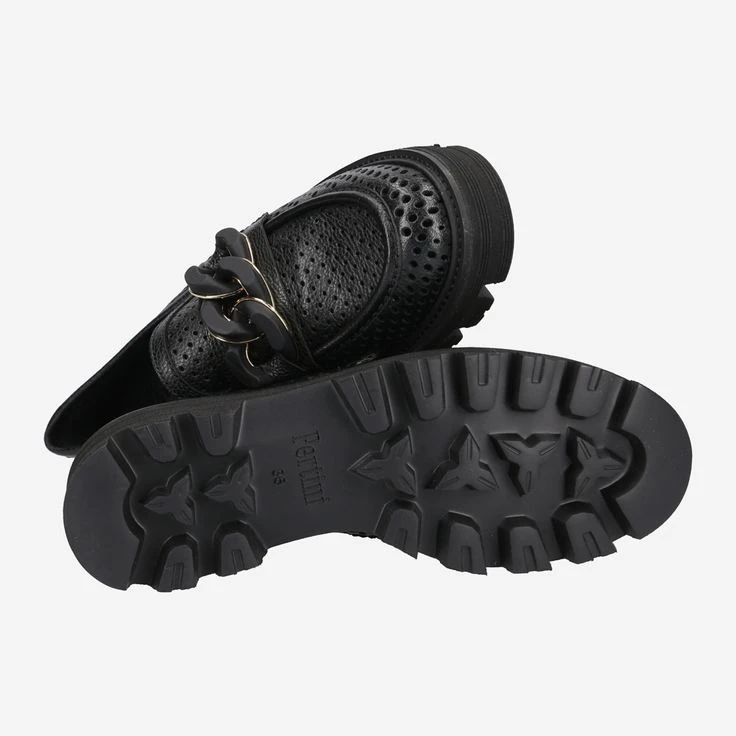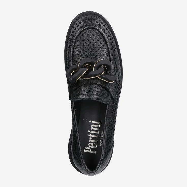 - Platform sole, block heel, loafer application, breathable, semi-transparent due to perforations, chain application / statement loafer
