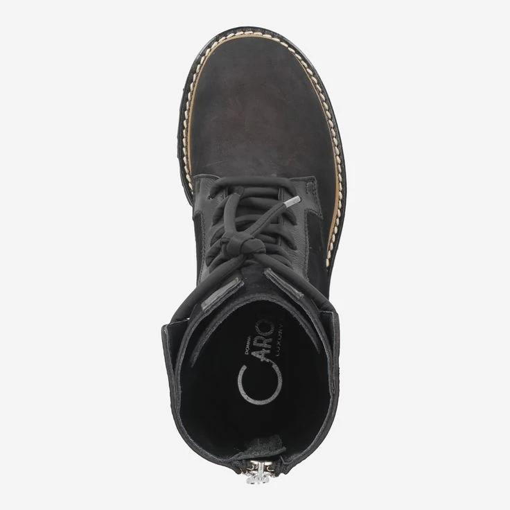 This Italian statement boot from Donna Carolina is your fashion wild card in your shoe closet! Its rocking design is emphasized by a bright contrast strip, as well as a double zipper on the back. The black nubuck leather convinces with its exclusive workmanship. Combine with it your dresses, blue jeans or knitwear combinations – they will be thrilled!