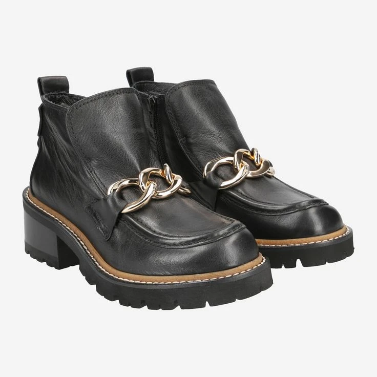 - Entry loop, contrast stitching along the last, loafer application made of gold-colored chain elements, zipper, logo application in the heel area, Extralight sole
