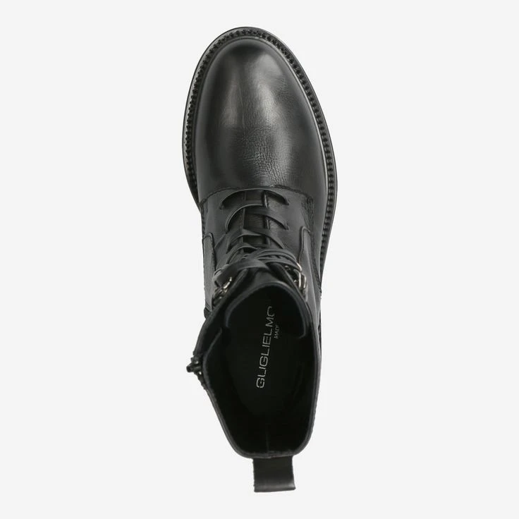 This high-quality biker boot from the manufacture Guglielmo Rotta will inspire you! The classic design of the black smooth leather boot is complemented by visual highlights: the lacing is decoratively accentuated by metal jewelry applications, while the leather laces emphasize the look in a high-quality way. The sole is stitched through. The entry is very practical and easy due to the zipper. This boot rocks!