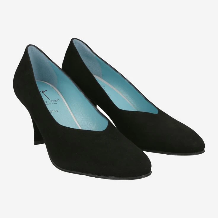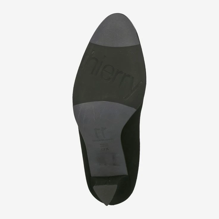 Black pumps from Thierry Rabotin made of soft suede. Inside the shoe is lined with comfortable leather. The leather sole has a rubber tread. The pumps have a curved heel, with a heel height of about 60 mm.