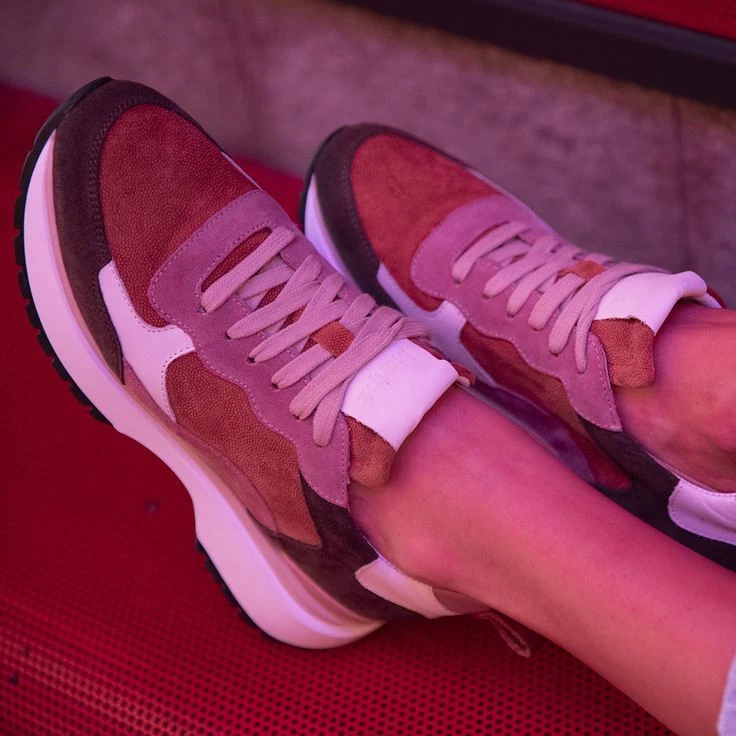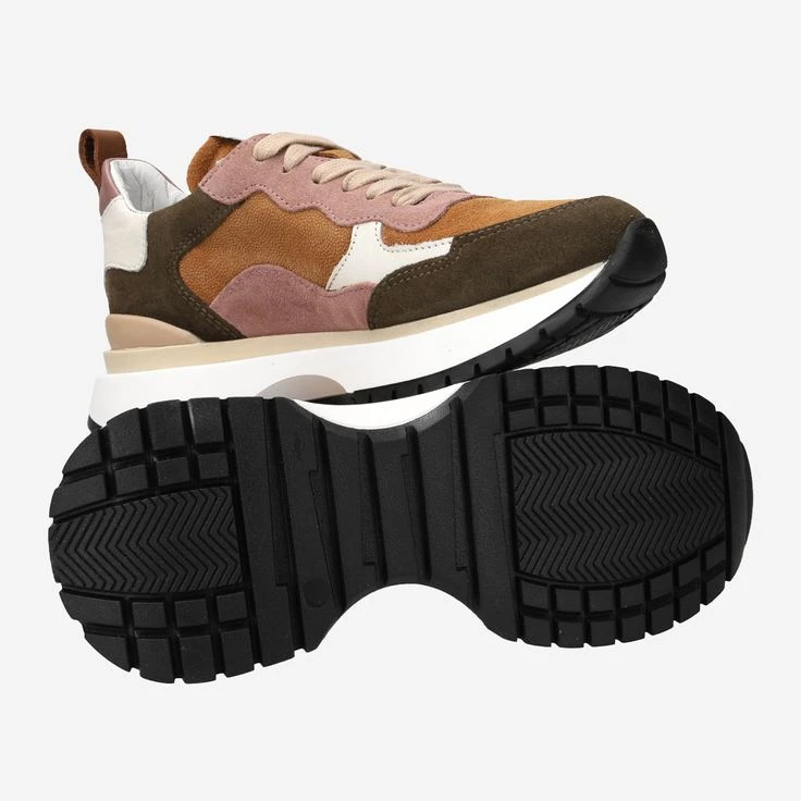 The ADELAINE casual shoe from Maripé is sporty and dynamic. The mix of green and brown tones looks particularly vivid against the white trend sole with a slight platform.