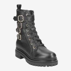 These rocking, black boots from Schuhe Lüke are the epitome of fashion and style! They convince with numerous, casual elements, such as the four leather straps with gold-colored metal buckles. The model „Angelica“ is complemented by a practical zipper, which makes it easier for you to get in. The gray laces in cozy structure perfectly complement this look!