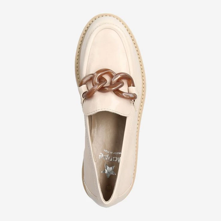 Do you love to dress chic, or even interpret the Light Academia look? Then you are with EMI VAR. 23 is the best choice for you! The masculine design of the platform loafer is strikingly set in scene by the present chain application. In addition, you enjoy high-quality beige leather – because Maripé attaches great importance to high-quality materials, precise workmanship and innovative design!