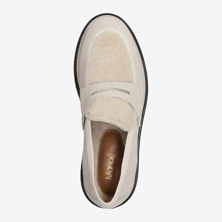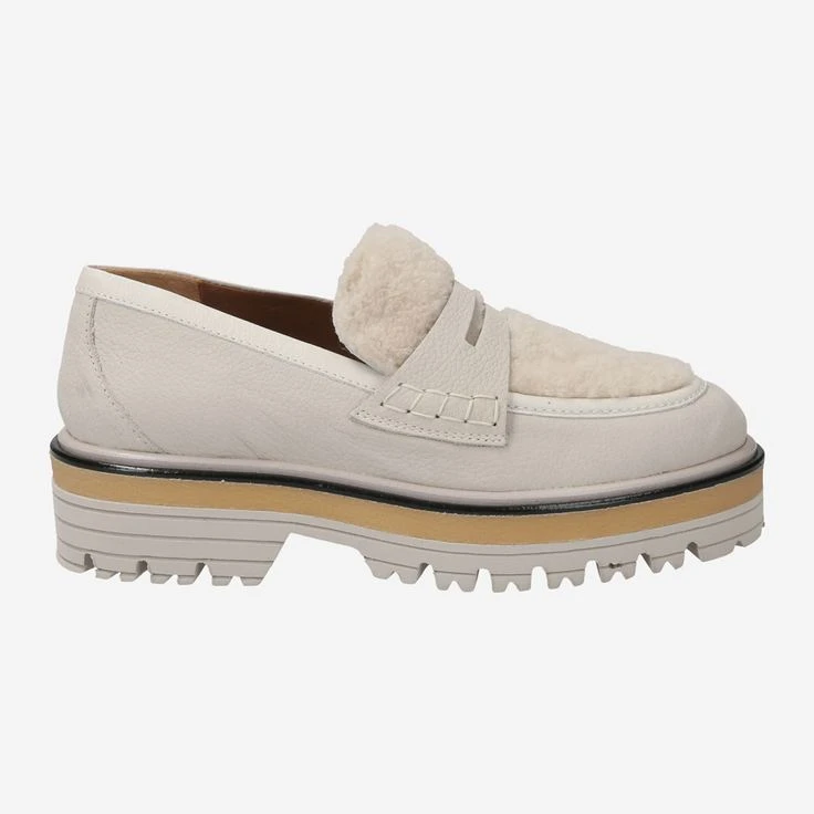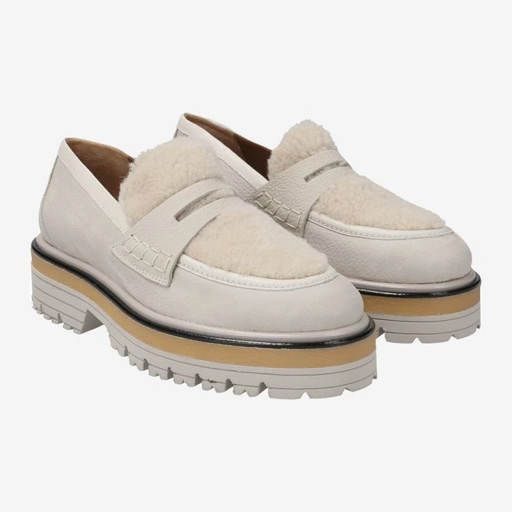 - Warm lining, platform heel, loafer application, decorative stitching, breathable