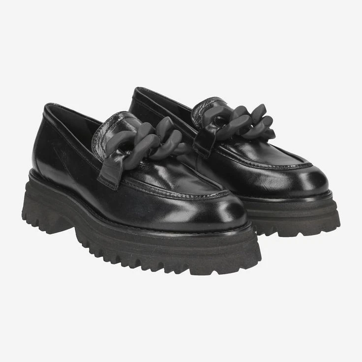 Chain elements and platform: this is the perfect match of the new season! The Italian manufacturer Maripé implements the trend of the catwalks with JARA impressively clear and noble. They enjoy deep black leather, a wide platform sole as well as a loafer application in matte black. The tonal look leaves room for business looks, floral dresses and also looks lacy with jeans! Give it a try!