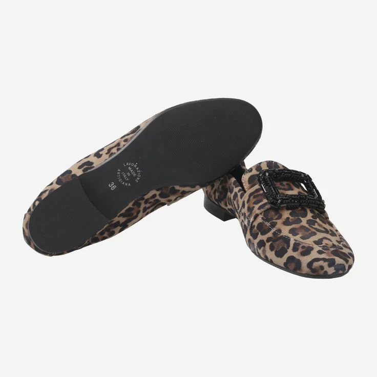 - Loafer application, jewelry application, stretch inserts on the shaft, trendy leo look with noble decorative application, breathable