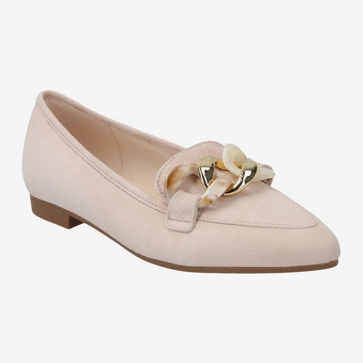 - Jewelry application (chain element with marble and gold look) in loafer application style, almond shaped shoe toe, breathable
