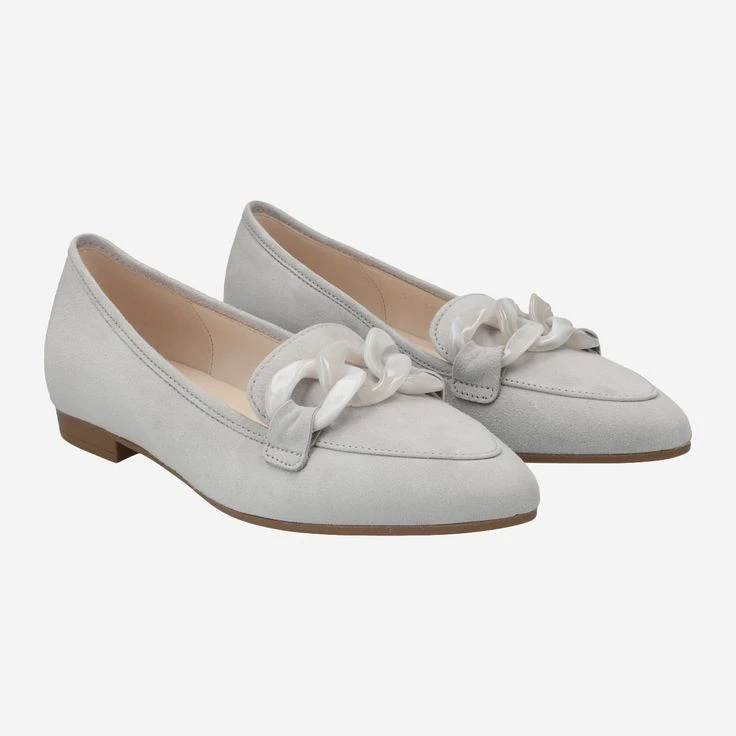 - Jewelry application (chain element) in the style of a loafer application, almond-shaped shoe toe, breathable