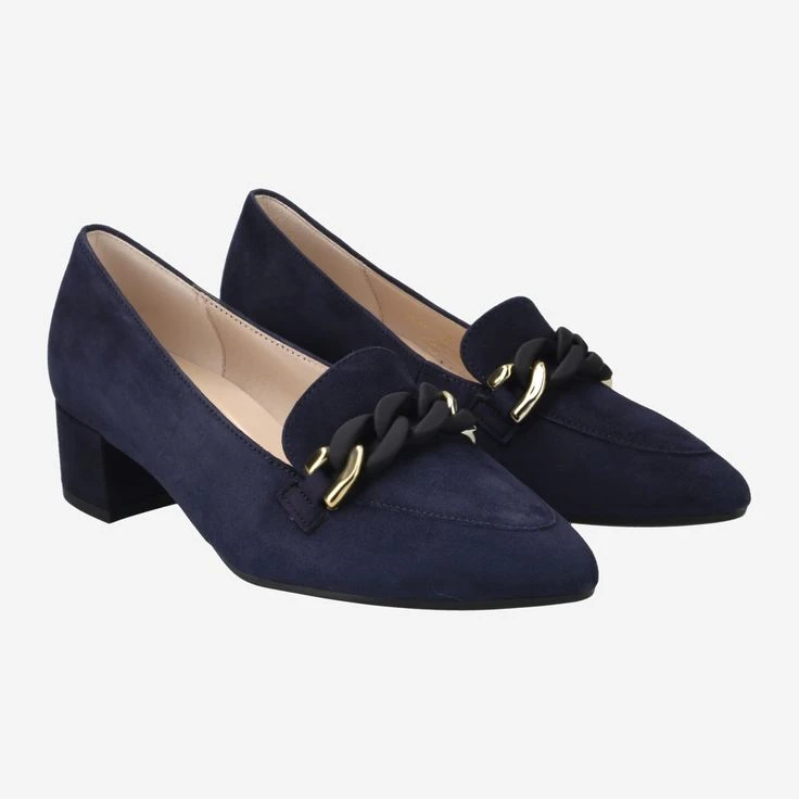 Especially when it comes to business pumps, comfort and precise workmanship is the name of the game. Because especially barefoot we all want to enjoy boundless lightness and a comfortable wearing feeling. You can trust Gabor in every respect: The manufacturing, the choice of material and the design are perfectly adapted to the needs of your feet. In addition, Gabor employs fashion-enthusiastic scouts who guarantee you a look that is always hip. Here quite currently the signature piece „chain application“! With it you are always en vogue – promised!