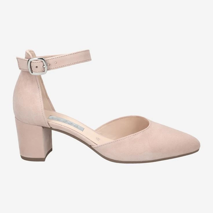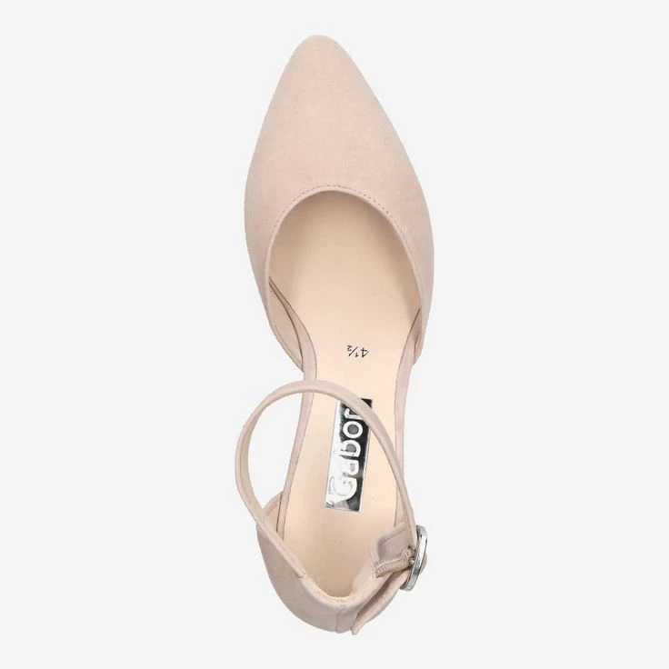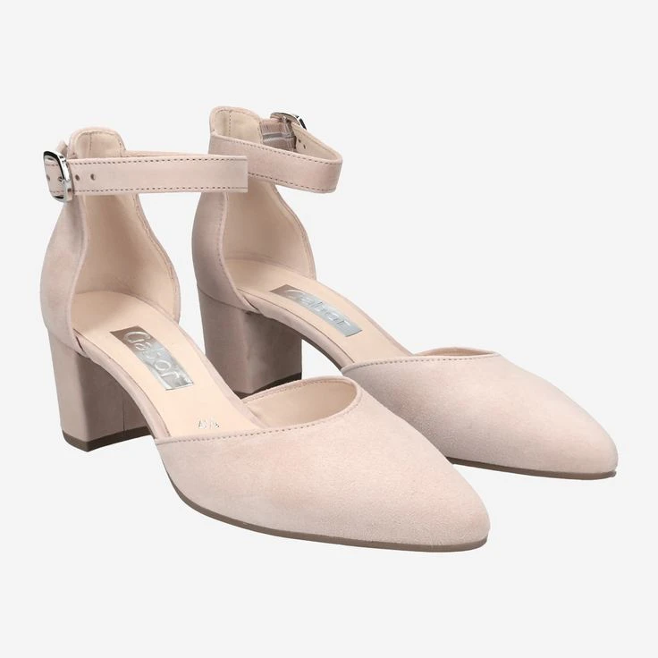 The feel-good specialist Gabor presents you these delicate summer pumps. The closed toe area is enchantingly broken through by the open design. The narrow ankle strap ideally underlines your chocolate side. An insider tip: Due to the powdery, light shade, this model conjures up visually endless long legs, as the eye hardly notices any contrast, Reduced single pair!