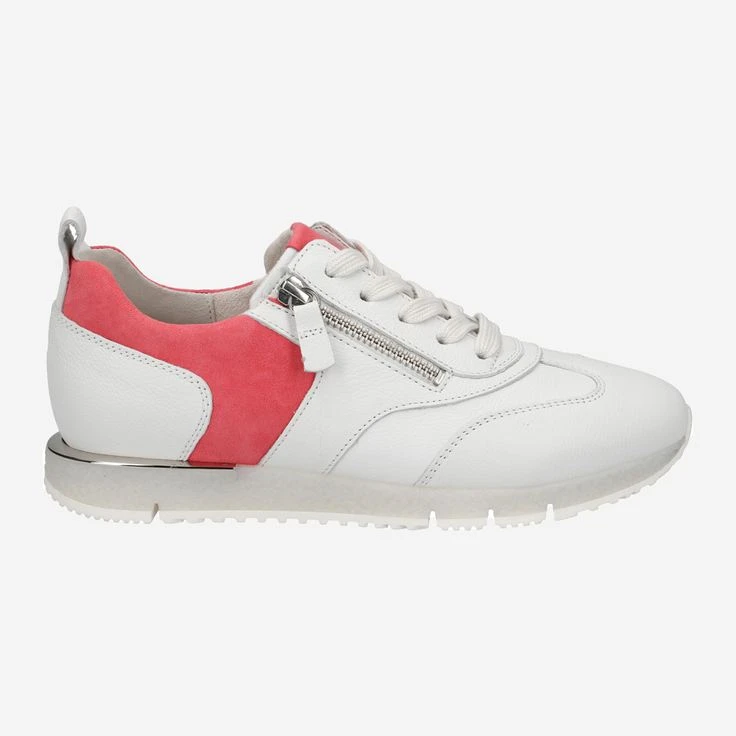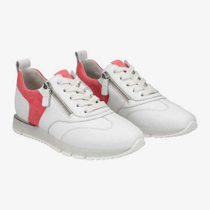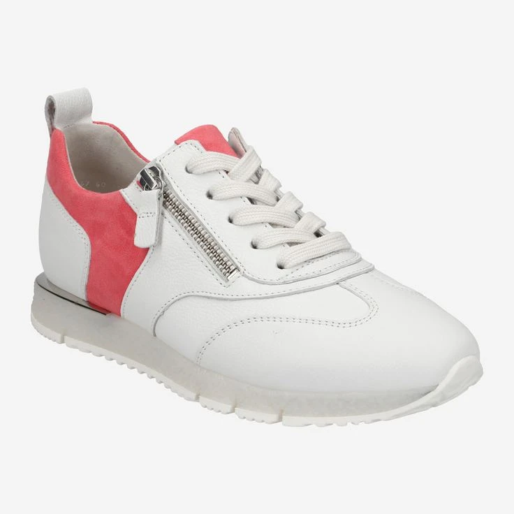 Your new favorite shoe introduces itself to you: This white casual shoe inspires with fabulous comfort, a foolproof entry and a really casual look! The mix of white smooth leather, fine-grained leather and coral red suede provides a dynamic design. Thanks to the removable Best-fitting insole, you can also wear individual insoles in it – just as you like!