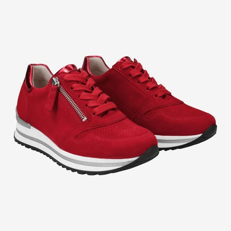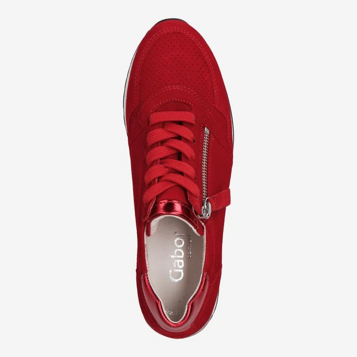 Let yourself be inspired by COLOR! In expressive red inspires this new sneaker from Gabor as an ideal eye opener. He is ideally suited for every day, bold, sporty and versatile as never before! The cuddly soft suede is complemented by a practical zipper. Details in metallic red give it the final touch!