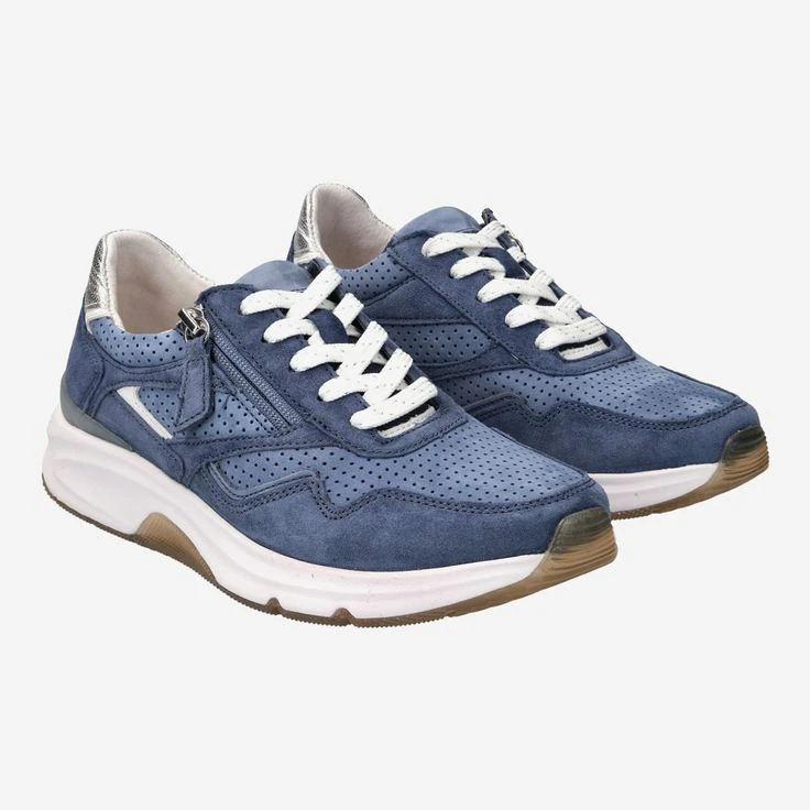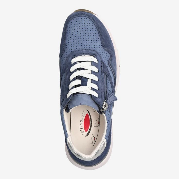 Are you ready for something new? Believe us, this is really ingenious: This lace-up shoe from Gabor has a rounded sole that gives you a completely new walking experience! Quite discreet, yet clearly noticeable is the „Rolling Soft“ technology of your feel-good brand Gabor. DIe semi-circular shape entices you to take the next step, and creates a flowing walking motion. The blue upper offers you flexibility and ideal stability. You’ll notice: Sometimes it’s the small subtleties that distinguish a sporty sneaker from an innovative favorite shoe! Try it out – and look forward to your little micro-adventure!