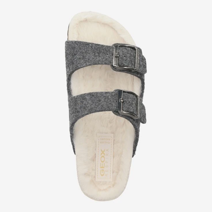 The iconic, popular house slipper is back! And more cuddly than ever! Geox dresses BRIONIA with a cuddly soft insole. Ideal for cold feet, and if you want to treat yourself to extra comfort! The gray textile straps you can adjust individually to your foot. This will make your home your temple of well-being!