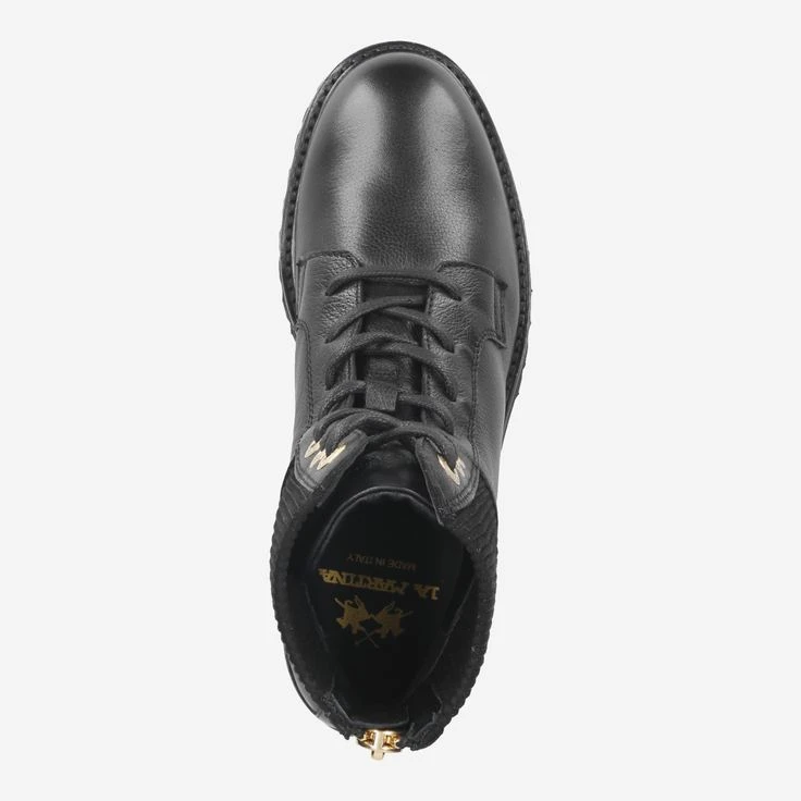 These Italian designer boots from La Martina embody the lifestyle of luxury, exclusivity and long-standing tradition. The manufacture once equipped the university teams of Harvard, Yale, Oxford and Cambridge, you enjoy precise workmanship and the highest quality standards. The black smooth leather is refined by gold-colored eyelets, noble logo embossing and a pleasant stretch area in the shaft. Treat yourself to pure luxury!