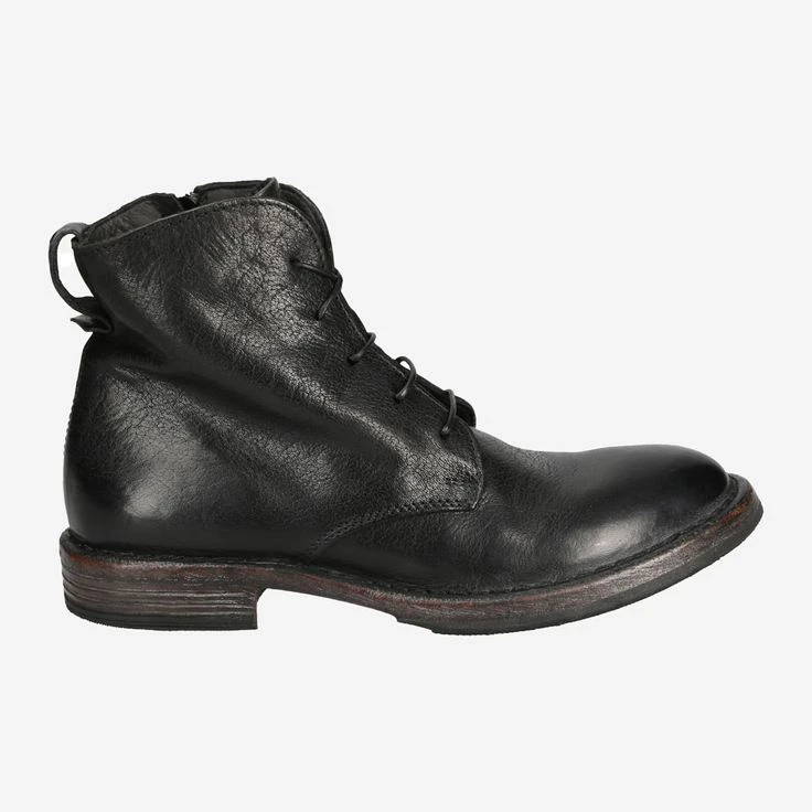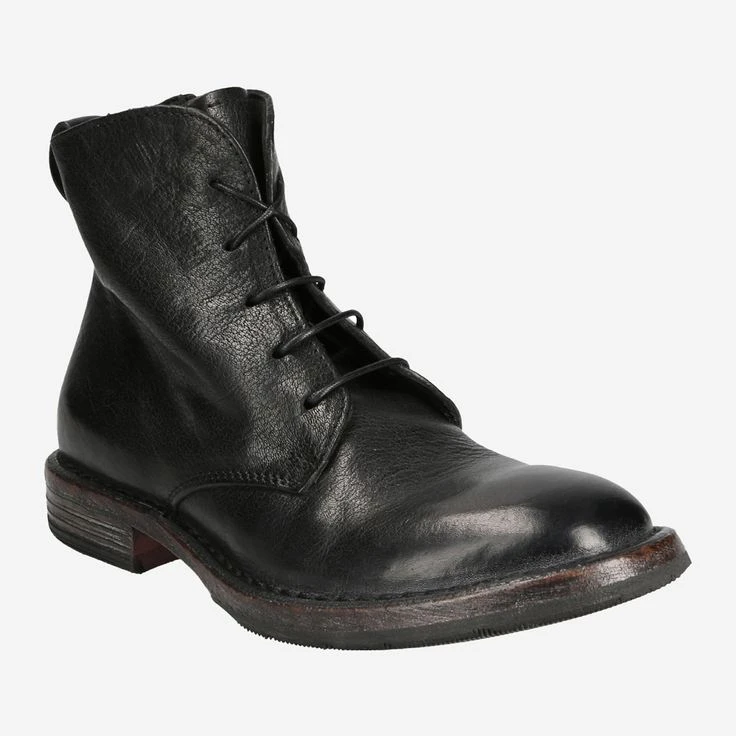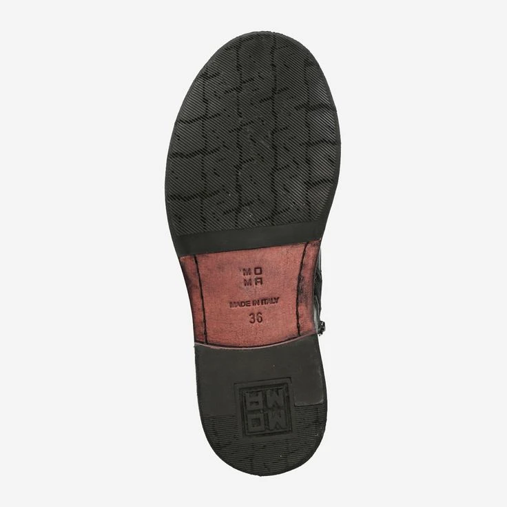 The trendy vintage look makes the shoes appear in used look with supposed traces of use. For all those who are looking for something special and at the same time like to combine styles with each other, this boot from the manufacture Moma Frago is just right! The black smooth leather is cuddly and gives the boot a rock look.