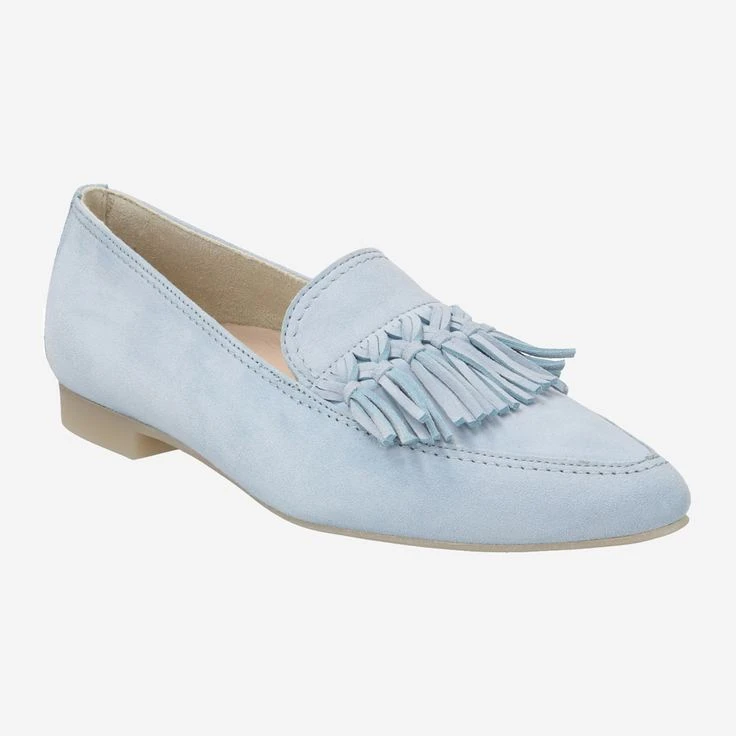 In light jeans-blue this loafer from Paul Green makes women’s hearts beat faster! The velvety suede leather emphasizes the delicate powdery hue particularly beautiful. Combined with jeans, with a light summer dress and also with business suits, this playful summer model conjures up a particularly beautiful look! The fringe application brings a touch of country-boho style in the classic look! An enchanting variation!