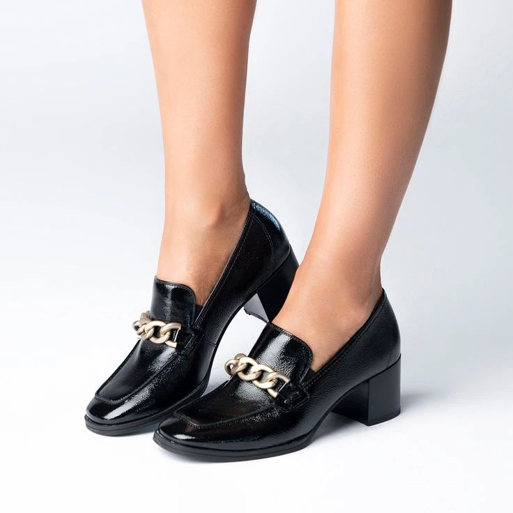 - Block heel, loafer application (matt gold-colored chain application), decorative stitching, SuperSoft, supple leather, soft heel cap, light and flexible outsole, soft footbed