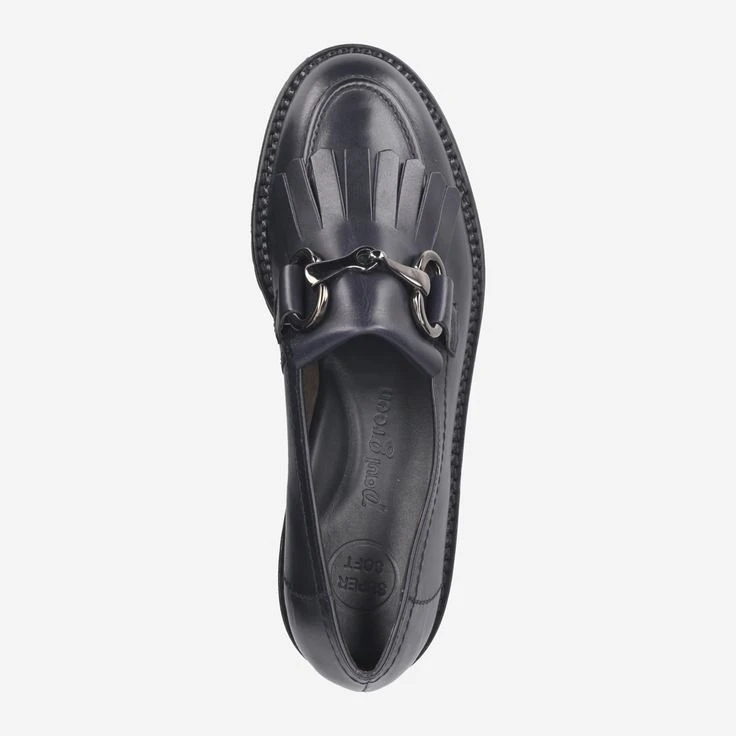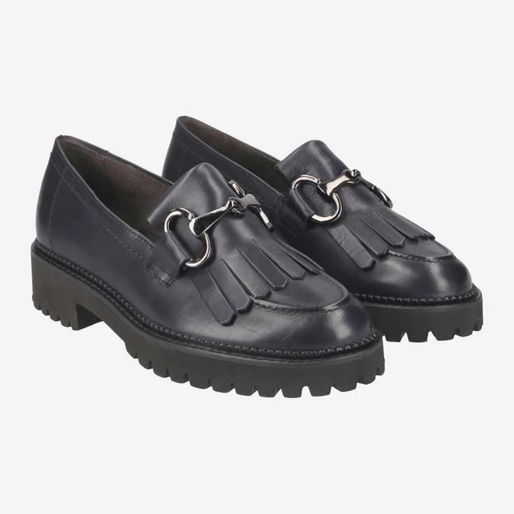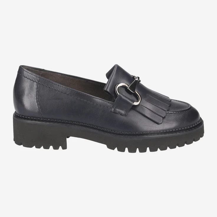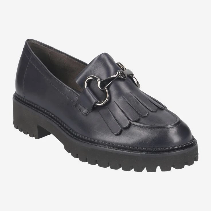 These SUPER SOFTEN loafers from Paul Green present themselves in an expressive design. The beautiful crumpled leather in dark blue is contrasted by a noble chain and fringes and thus follows the trend of the season. The super soft finish makes the model extremely comfortable to wear and uncomplicated to handle. The distinctive tread sole underlines the trendy look and ensures a secure appearance. This loafer is a real favorite! Paul Green makes shoes with great passion and mastery, which is expressed in perfection, quality, style and fit. The result: a unique, uplifting wearing experience! The Paul Green effect.
