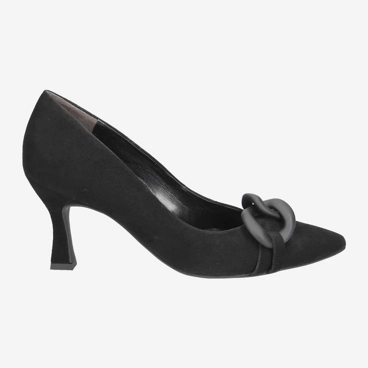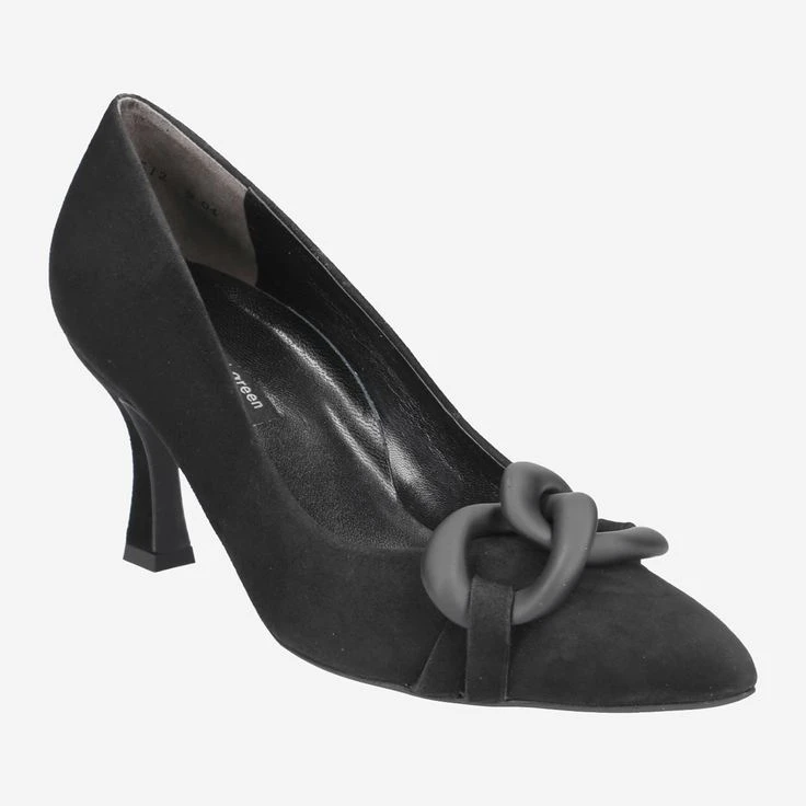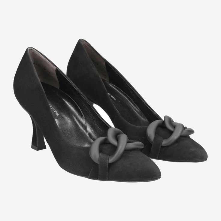 These SUPER SOFT pumps from Paul Green are perfectly made for fashionable styling variations. The extremely soft velvet leather in black harmonizes artfully with the black chain. The shapely leather-covered block heel visually stretches the leg and convinces with excellent walking pleasure. In addition, the super soft processing impresses for optimal appearance, all day long! This model will never let you down in style! Paul Green makes shoes with great passion and mastery, which is expressed in perfection, quality, style and fit. The result: a unique, uplifting wearing experience! The Paul Green effect.