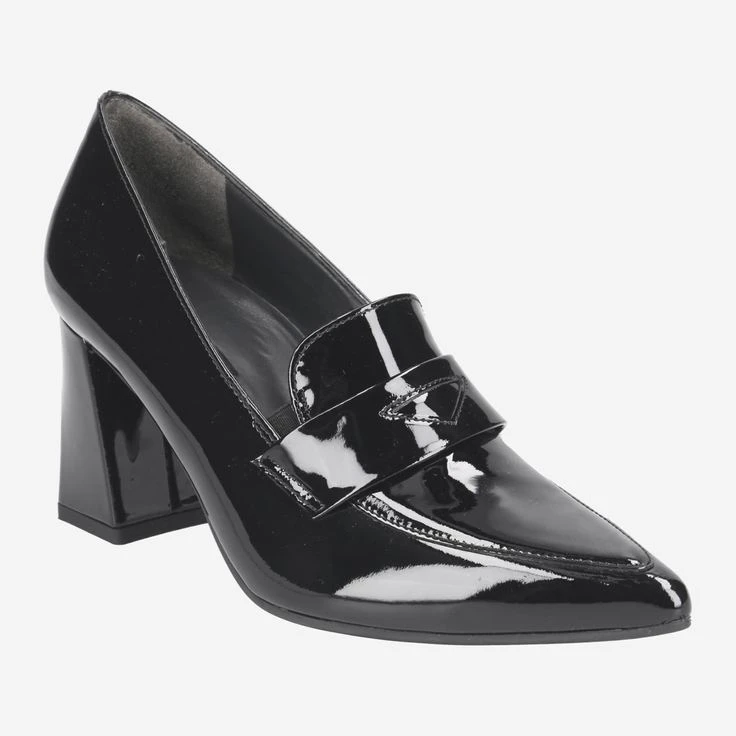 - Block heel, stretch inserts, loafer application, decorative stitching, breathable