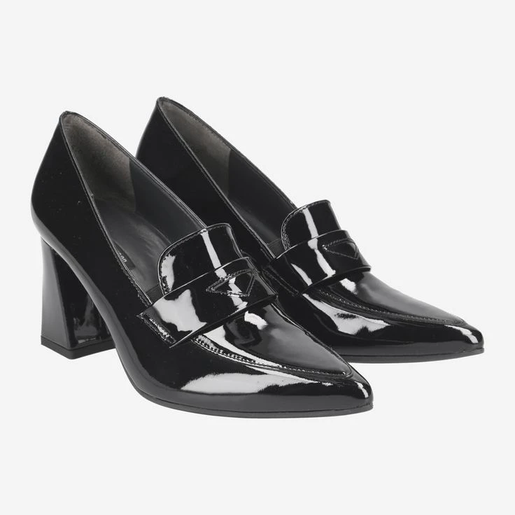These high front pumps by Paul Green show themselves in a fashionably staged Trotteur look. The black soft patent leather presents itself with a raised front section and provides a characteristic touch with the tapered shape. The striking block heel brings the right amount of style into play. A classic and classy companion that meets the highest demands! Paul Green makes shoes with great passion and mastery, which is expressed in perfection, quality, style and fit. The result: a unique, uplifting wearing experience! The Paul Green effect.