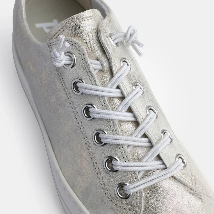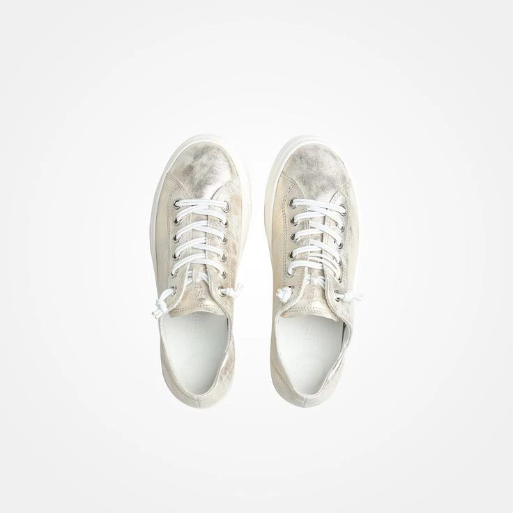 Sneakers are cult! And this beige model in trendy metallic look is the absolute must-have of the coming season! Paul Green complements the coated leather with an innovative lacing made of double rubber laces! This makes putting on and taking off a breeze. The SuperSoft technology, the fantastically comfortable Relaxweite, and the interchangeable leather footbed give you wonderful comfort! The inner lining made of fluffy terry cloth provides an airy light wearing feeling.