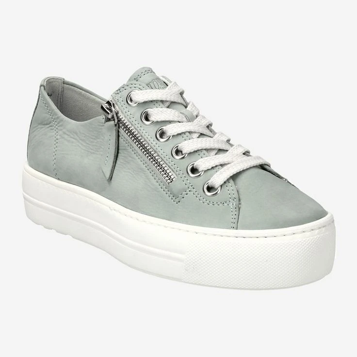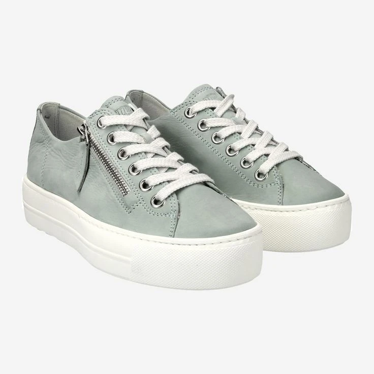 Finest „Royal Nubuck“ leather makes this sporty sneaker a feast for the eyes! In delicate green he conquers the fashion hearts in an instant! The fluffy inner lining made of cotton terry softly beds your foot, the specially designed heel cap rounds off your comfort package high quality! Enjoy the street style in this fabulous quality!