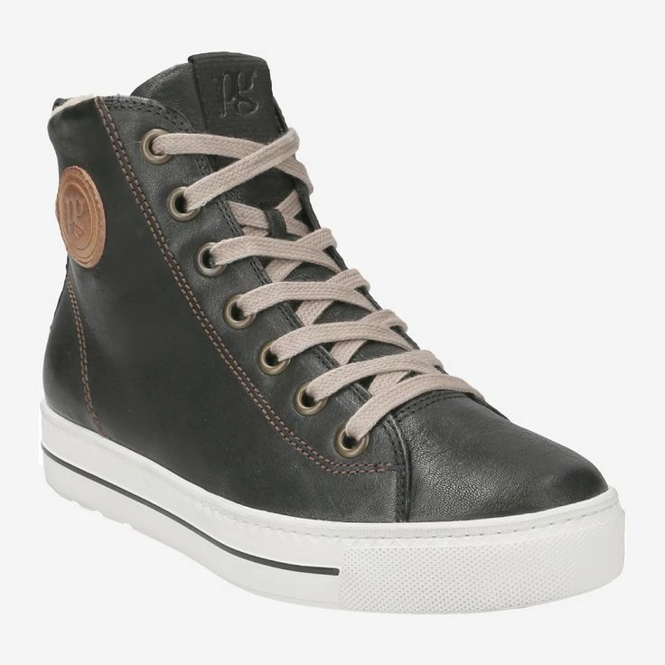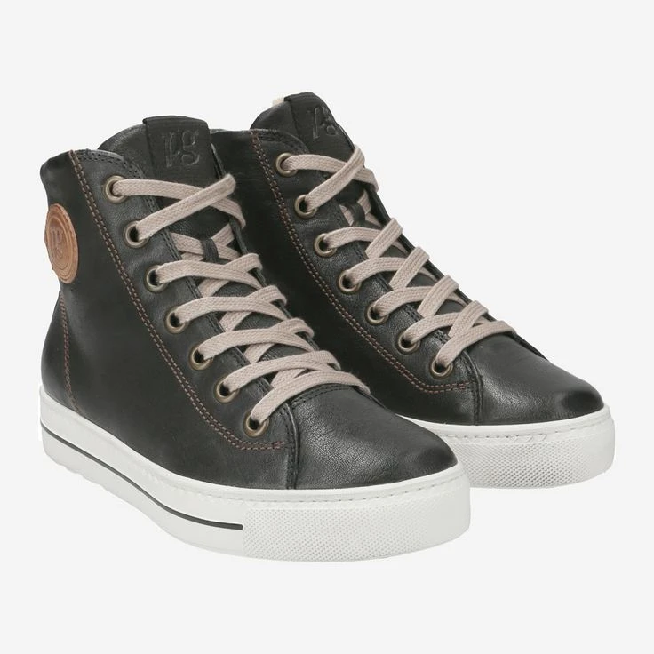 With these hightop sneakers from Paul Green, you’ll definitely rustle through the leaves in style this fall! The black smooth leather is supple, robust and durable at the same time and also provides with the brown accents for a casual, stylish look. The extremely lightweight outsole with the super soft heel caps gives thanks to the light and flexible outsole a particularly comfortable feel. Rounded off with the inner warm lining her feet always stay cozy warm. Discover your new favorite sneaker for the fall!