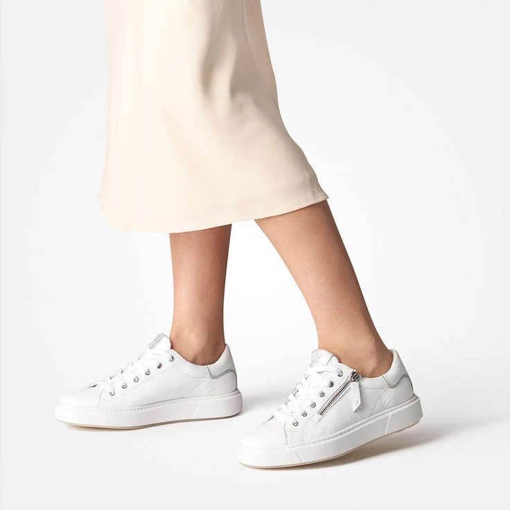 With these SUPER SOFT Pauls with exchangeable footbed from Paul Green, comfort and modernity are perfectly combined. The model inspires with white smooth leather and subtle details in silver. The matching zipper on the outside not only looks casual, but also ensures quick on and off. As a comfort bonus, the sneaker has a soft removable footbed that can be swapped for your own insoles in no time. The durable outsole rounds off the feel-good factor. Let yourself be inspired!