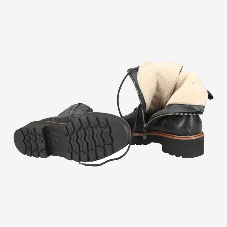- Warm lining, zipper, entry loop, logo embossing, contrast stitching, block heel, platform sole