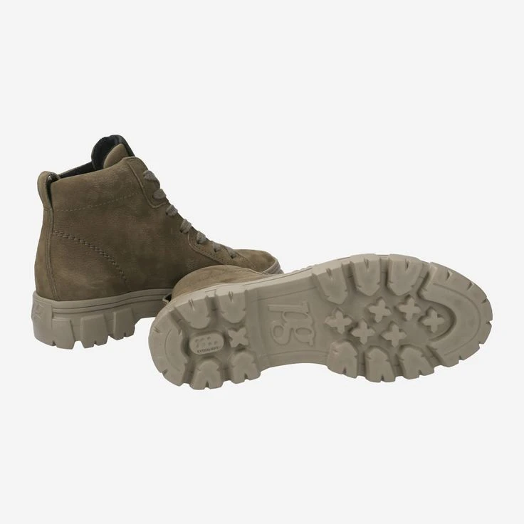 These SUPER SOFT lace-up boots from Paul Green are robust and casual at the same time. High-quality workmanship in olive nubuck leather gives the model a relaxed look. Thanks to the super soft finish and the inner lining made of leather with TENCEL™ fibers, the pair wears fantastically. The lightweight outsole with progressive tread is a contrasting feature. A trendy companion for relaxed casual looks! Paul Green stands for women’s shoes of the highest quality, made with craftsmanship and passion. Each of our shoes is made by qualified master shoemakers in up to 160 steps. The result is quality that you can see and feel.