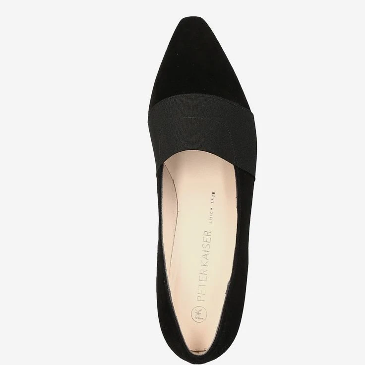 Noble, simple and very comfortable are these exclusive loafers of the brand Peter Kaiser. With their upper made of black suede, the shoes have the usual luxurious look and at the same time impress with their wearing comfort: both the cover sole and the inner lining are made entirely of leather, making the shoes a comfortable companion for everyday wear or on special occasions. The rubber sole with a 25 mm high block heel in a wooden look also ensures flexibility and stability. The practical stretch insert also ensures a perfect fit of the loafers.