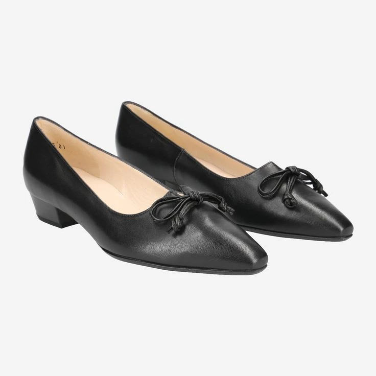 You too can transform yourself into a style icon! LIZZY gives your outfit a classic touch, an elegant charm and an extraordinary clarity. The noble character is created by finest smooth leather in deep black. A notch in the middle of the shoe serves as an eye-catcher, which is playfully complemented by the bow application. The heel is beveled and clearly defined. With this, you will make a classically stylish appearance both in a sheath dress and in your favorite trousers!