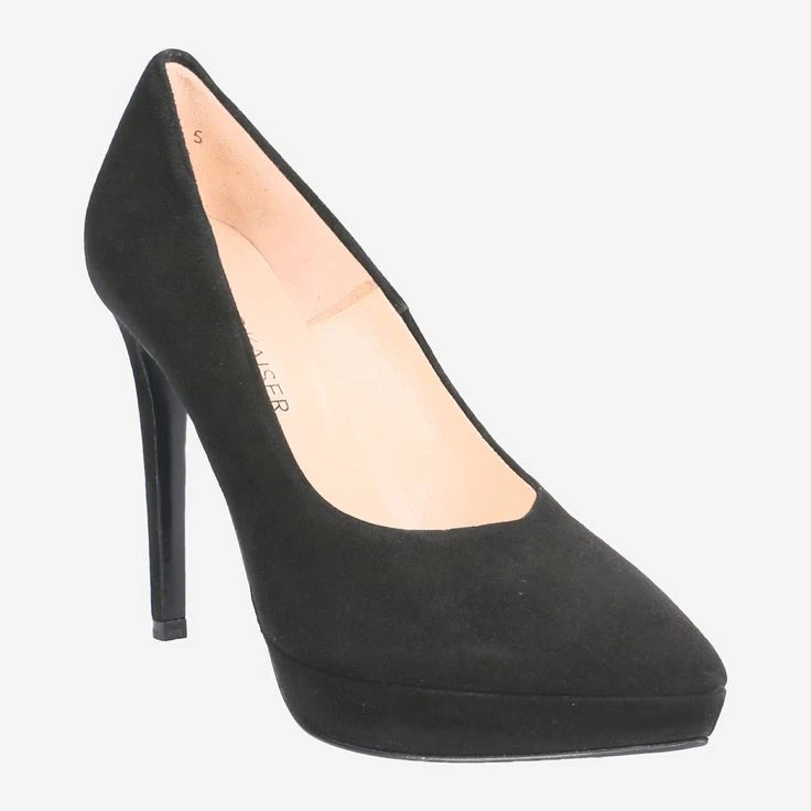 The epitome of feminine elegance is ELESSA by Peter Kaiser! With these black platform pumps you will enjoy a great view – with excellent design at the same time! Black suede is the perfect choice for business meetings, celebrations and for all occasions that require an understated finesse.