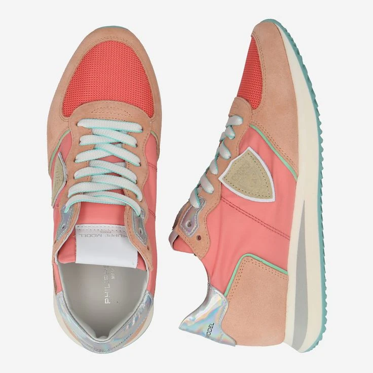 Art lives through color! And design interprets art! Really exciting is what the professional makes of it: French fashion designer Philippe Model makes this luxury sneaker TRPX LOW from a playful mix of three different materials. It creates a vibrant look with great impact. Areas of neon-peach mesh and nylon essentially define the look. Details in mint as well as reflective coatings give the lace-up shoe sophistication and individuality!