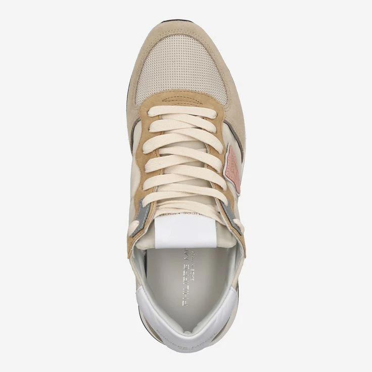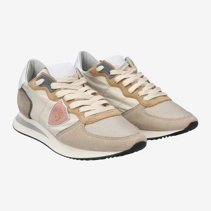 Treat yourself to this luxury sneaker of the French noble designer Philippe Model! The catwalks of Paris he has called his own, and produces since 2008 in Italian master quality. This model „TRPX Mondial“ is by the mix of beige suede, nylon and mesh material a flexible, adaptable leisure shoe that exceeds the highest standards of comfort, quality and design! Characteristic of the designer is the logo application, the coat of arms of Paris.