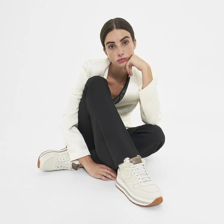 You can enjoy your casual street look with MARAN by Voile Blanche even in winter! Even more so in a trendy platform height! Simply ingenious: You enjoy natural-grained leather in off-white, the ultimate sporty sneaker style as well as fluffy elements made of genuine sheepskin! You don’t like hot feet? No problem: In this model, only the tongue and the shaft are lined! The rest of the inner shoe is lined with butter-soft leather.